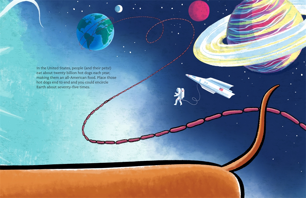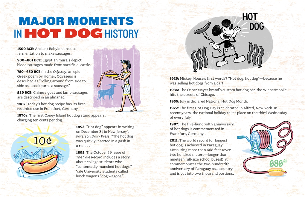 But the fun doesn’t stop there! HOT DOG! is overflowing with flavorful nonfiction content designed to feed young minds and inspire future foodies. Discover a recipe for intriguing “snake dogs,” wrap your head around some wacky hot dog math, and explore a sizzling timeline of the hot dog’s most memorable milestones.