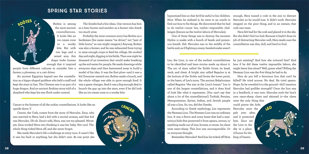 Stuffed with science cover to cover, this is the perfect first book of astronomy. Kids will learn what a star is, the life span of a star, light years, how to find north, and everything else about the night sky. Packed with adventure, readers will discover over 28 stories of the stars–from Andromena, who’s tied to the rock as a sacrifice to Cetus, the sea monster–to the heroic tales of Hercules, Persues, Pegsus, Orion, all 12 constellations from the zodiac, the Greek gods, and classic favorites like Ursa Major and Ursa minor, AKA the Big and Little Dipper.